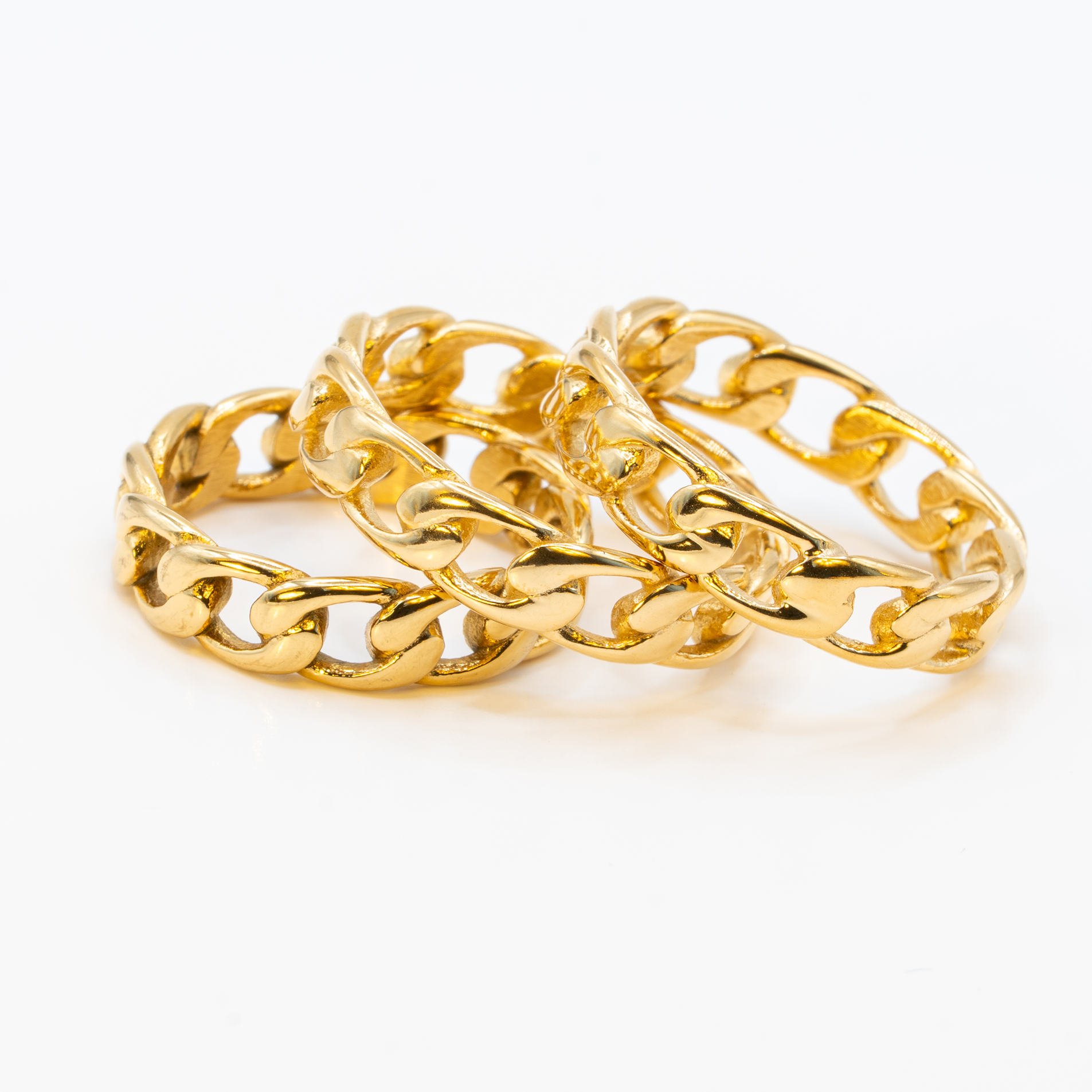 Ein modernes Schmuckstück mit klassischem Charakter: Der Anello Catena Dorata vereint die Eleganz italienischer Ketten mit der Leichtigkeit minimalistischen Designs. Gefertigt aus hochwertigem Edelstahl 316L und mit 18 K Gold veredelt – hautfreundlich, wasserresistent und hypoallergen.