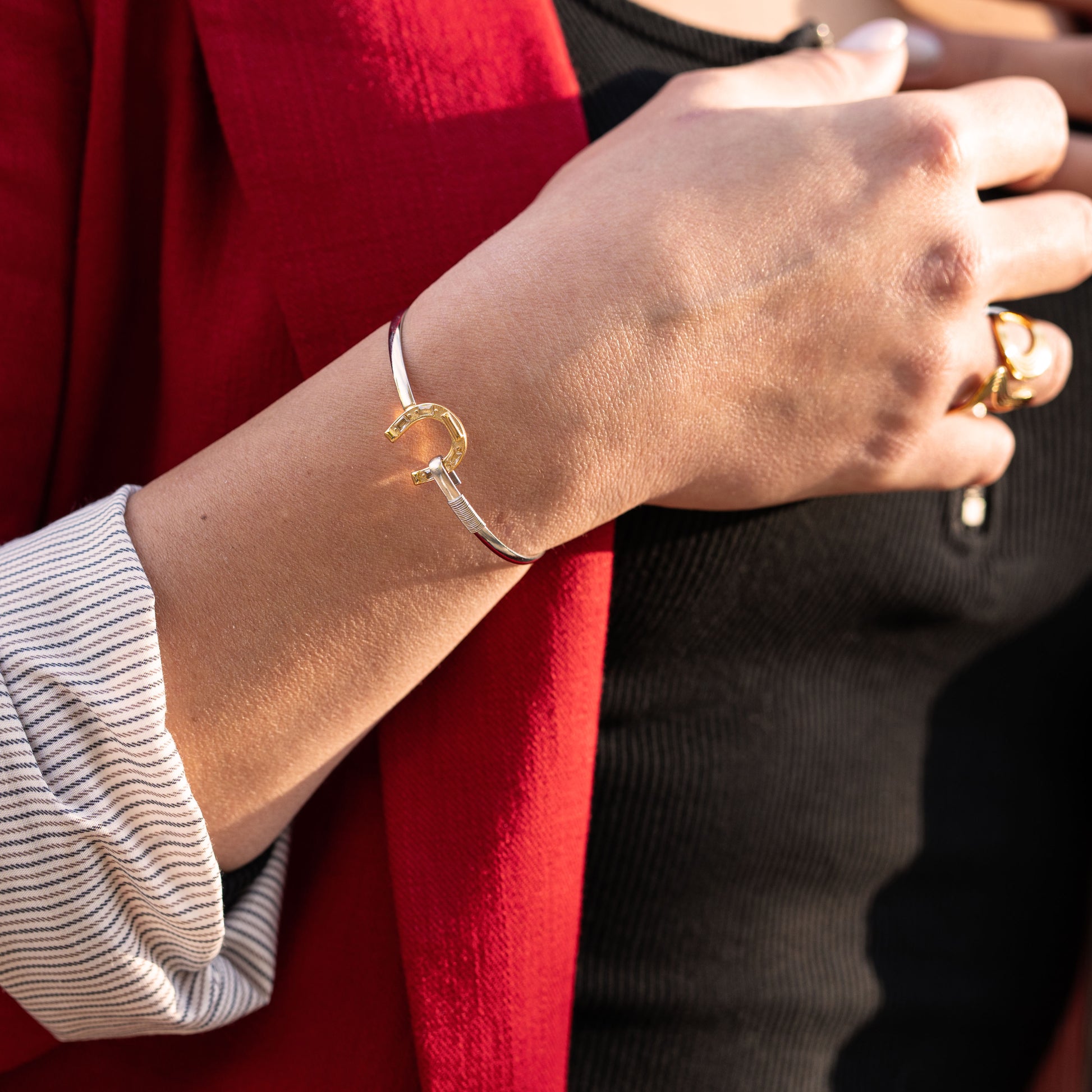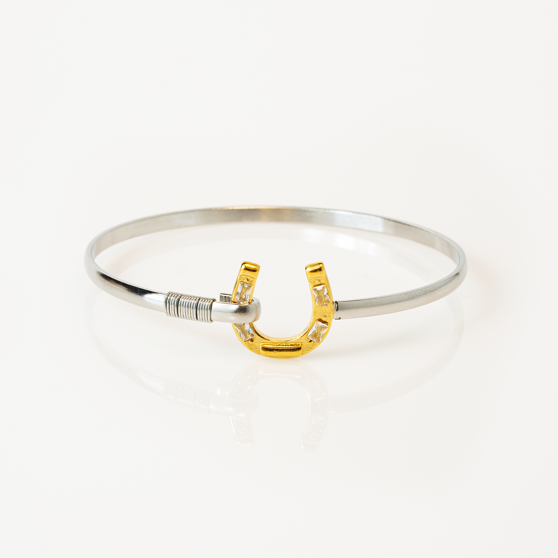 Ein besonderes Schmuckstück mit Symbolkraft: Der goldfarbene Armreif in Hufeisen-Form steht für Glück, Stärke und Schutz. Gefertigt aus hochwertigem Edelstahl 316L und mit 18K Gold veredelt – hypoallergen, wasserresistent und angenehm zu tragen. Perfekt als stilvolles Statement oder als Glücksbringer am Handgelenk.