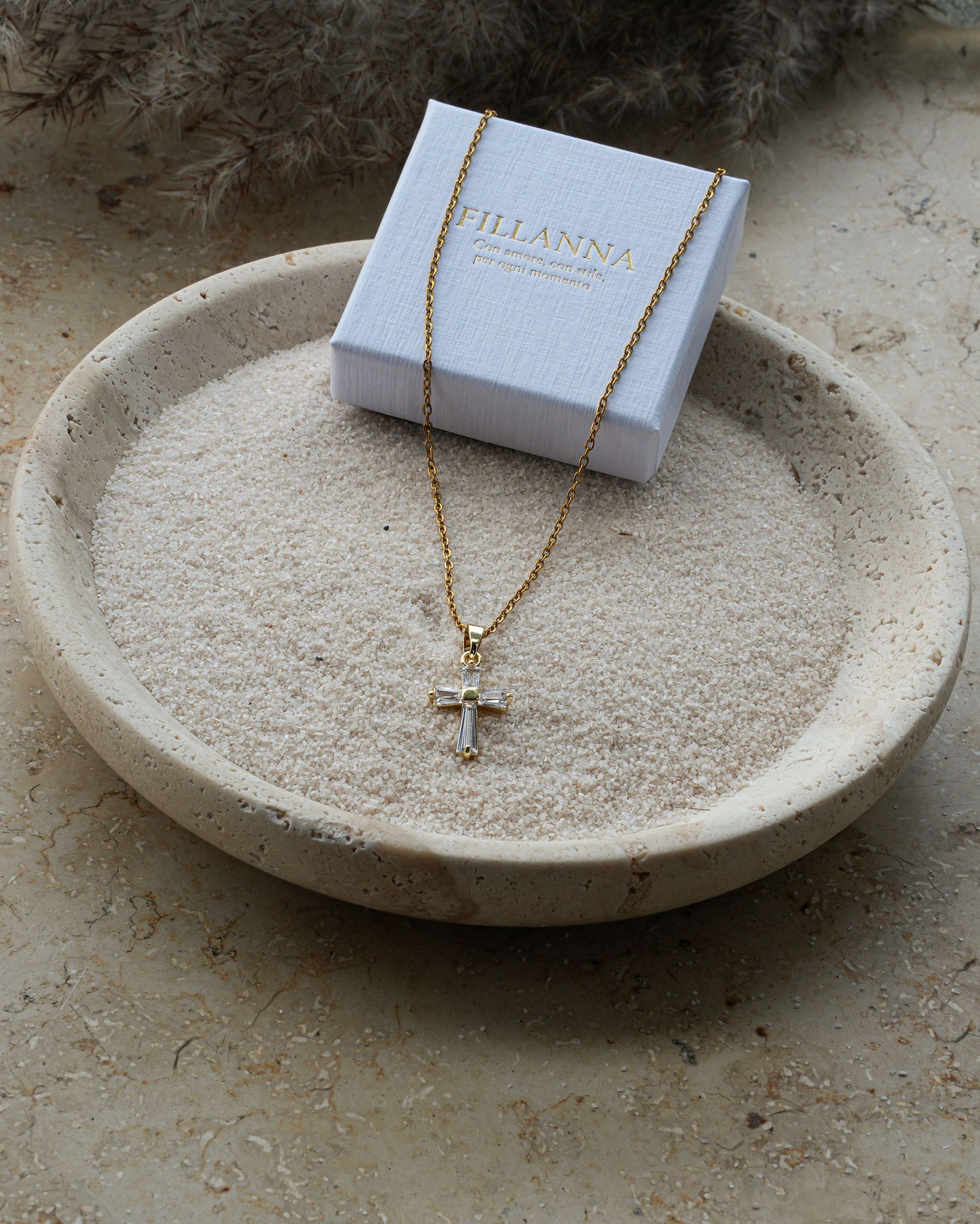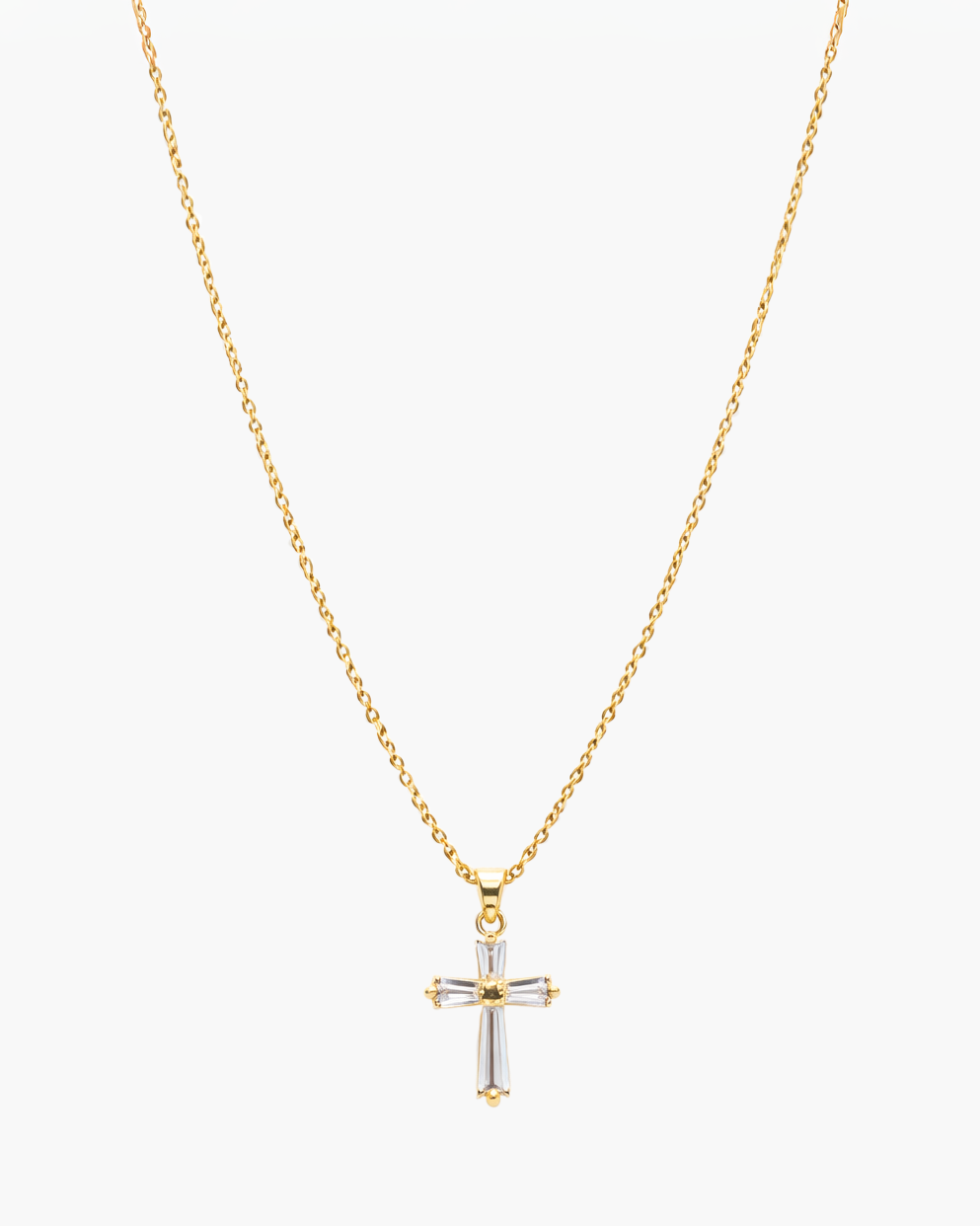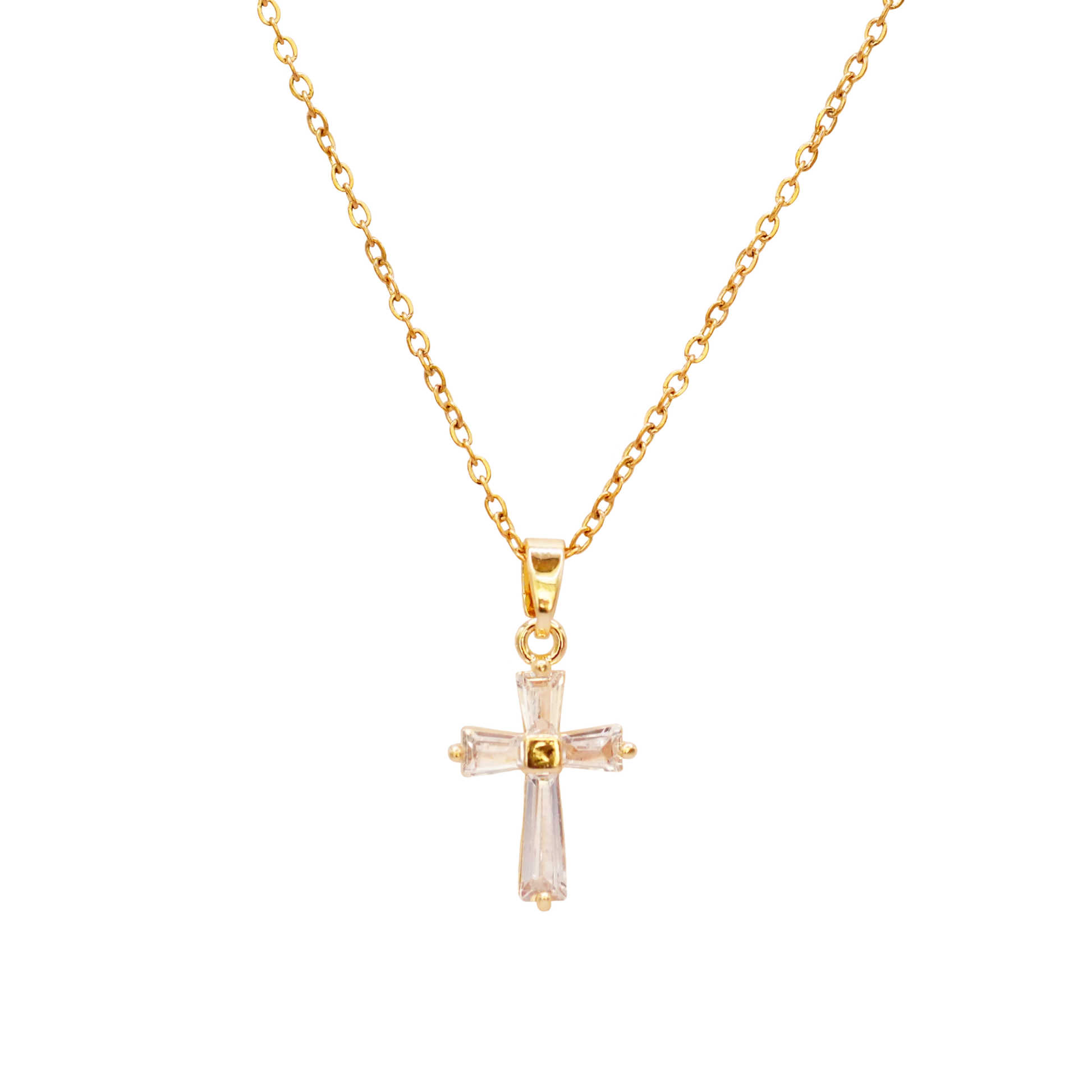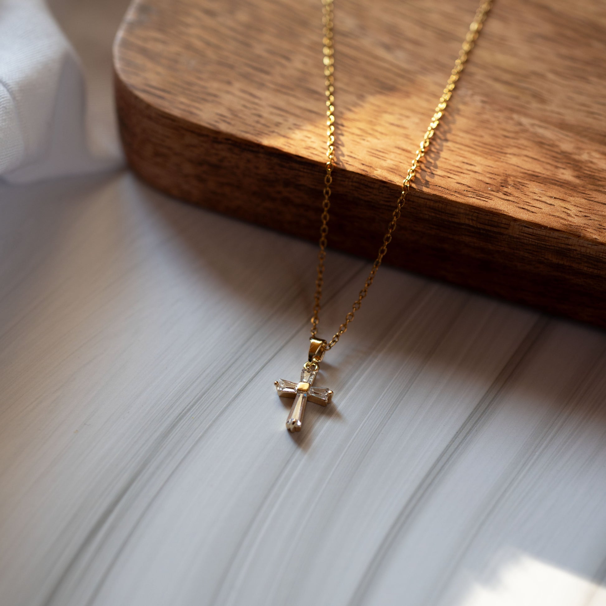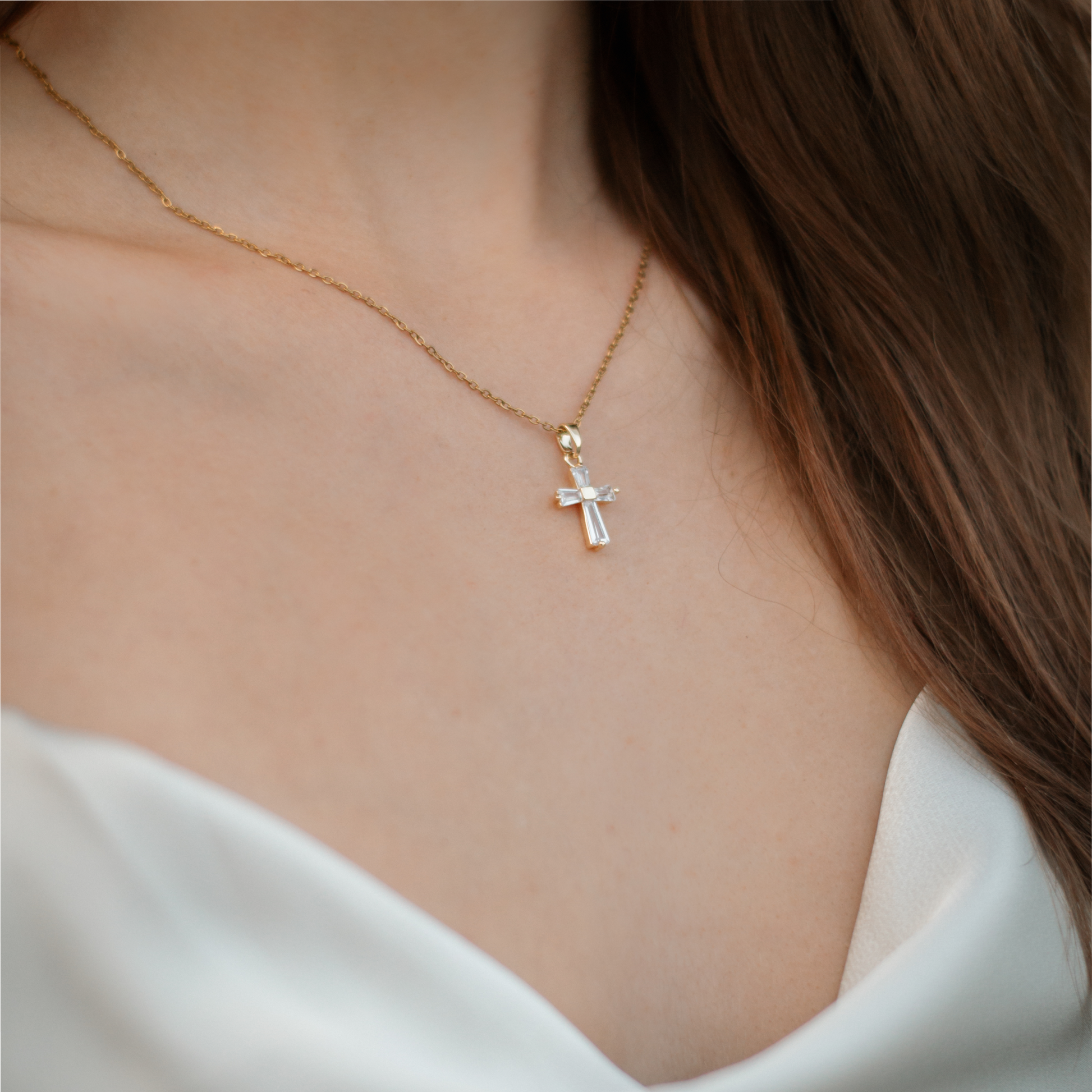Eine filigrane Halskette mit elegantem Kreuz-Anhänger, gefertigt aus hochwertigem Edelstahl 316L und mit 18K Gold veredelt. Ein zeitloses Schmuckstück, das Spiritualität und Stil vereint. Wasserfest, hypoallergen und ideal für empfindliche Haut. Perfekt für den Alltag oder besondere Anlässe.