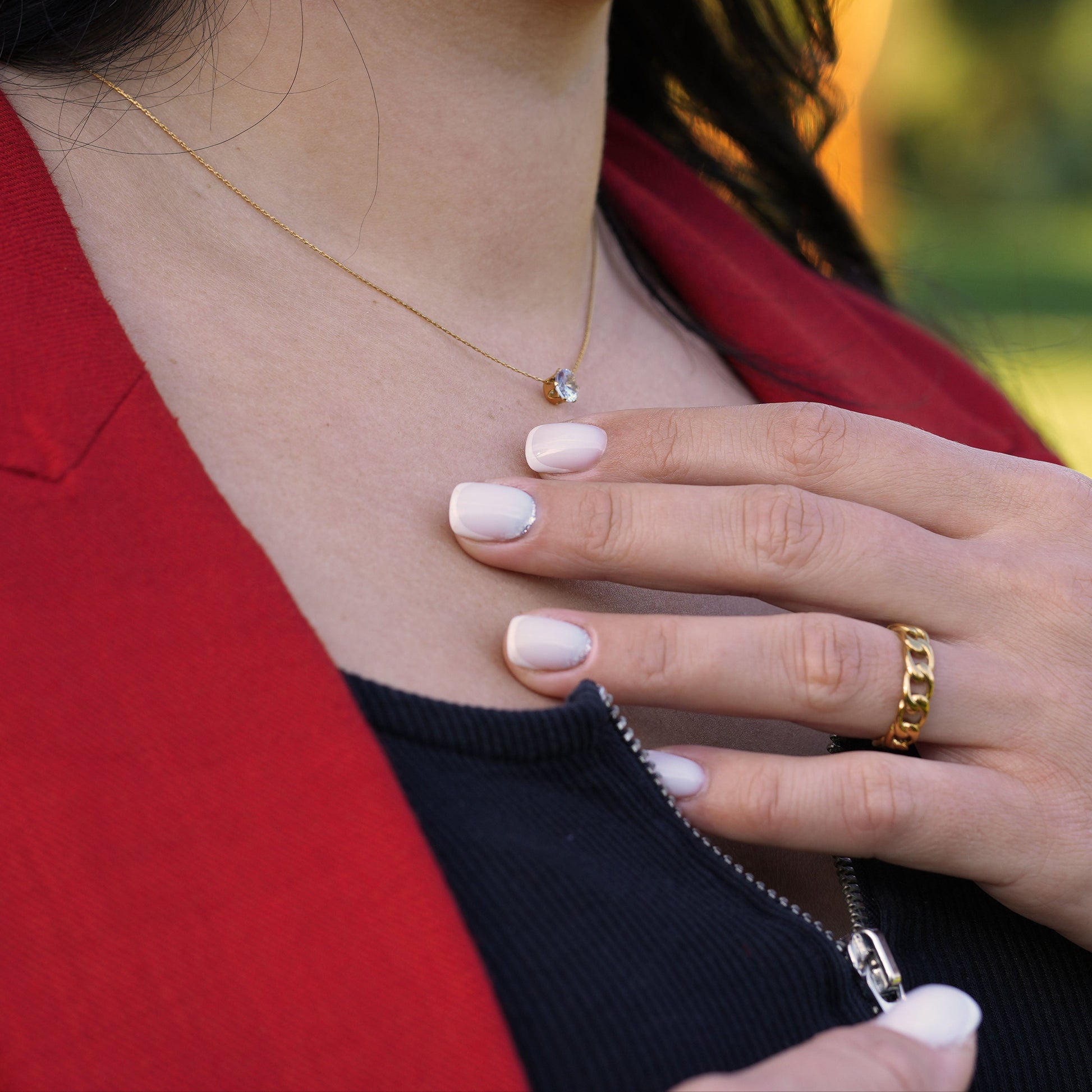 Zeitloser Klassiker: feine Kette mit rundem Solitär-Schmuckstein in Krappenfassung. Gefertigt aus robustem Edelstahl 316L und mit 18K Gold veredelt – hautfreundlich, wasserresistent und ideal für Every-Day-Looks oder Layering.