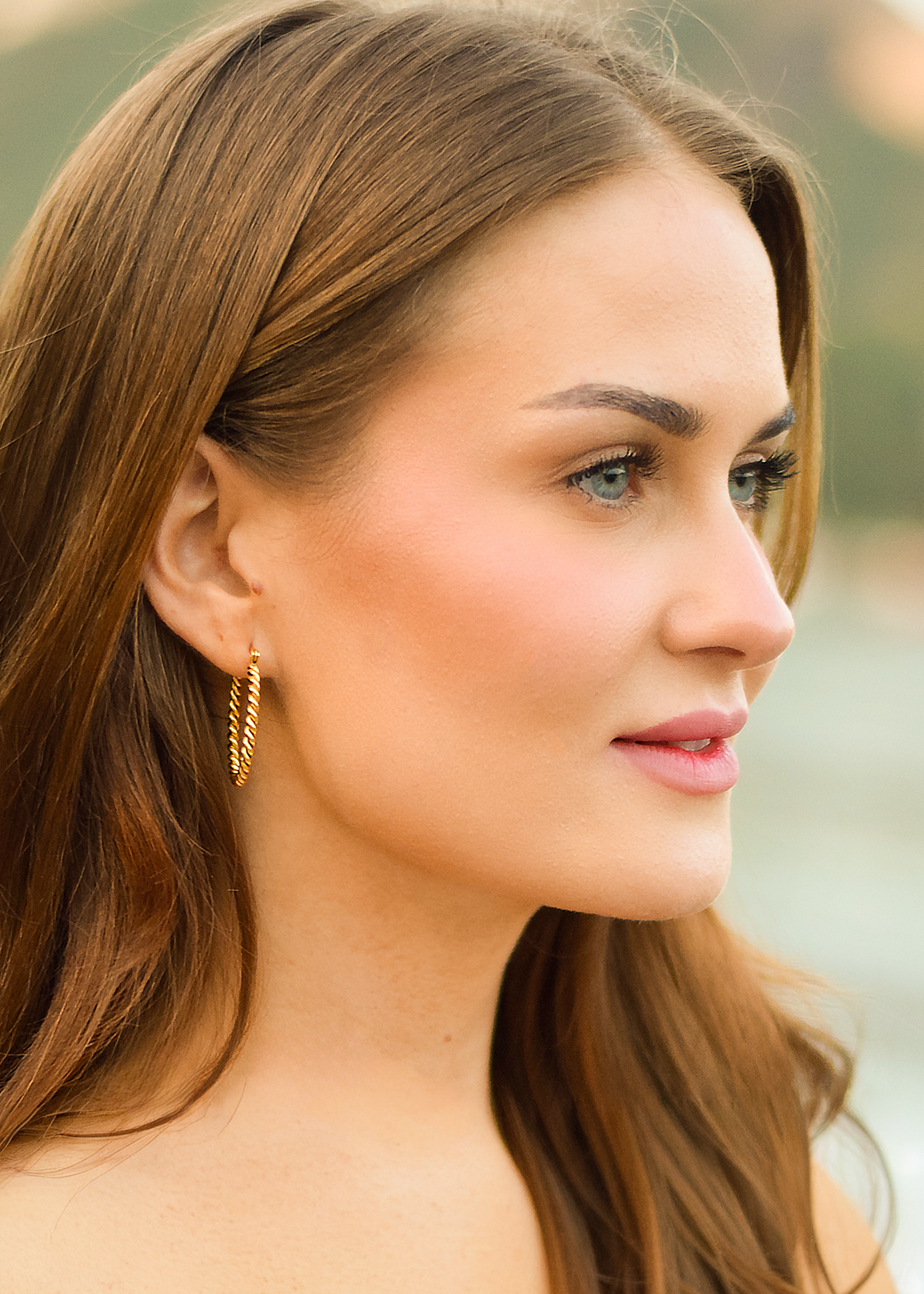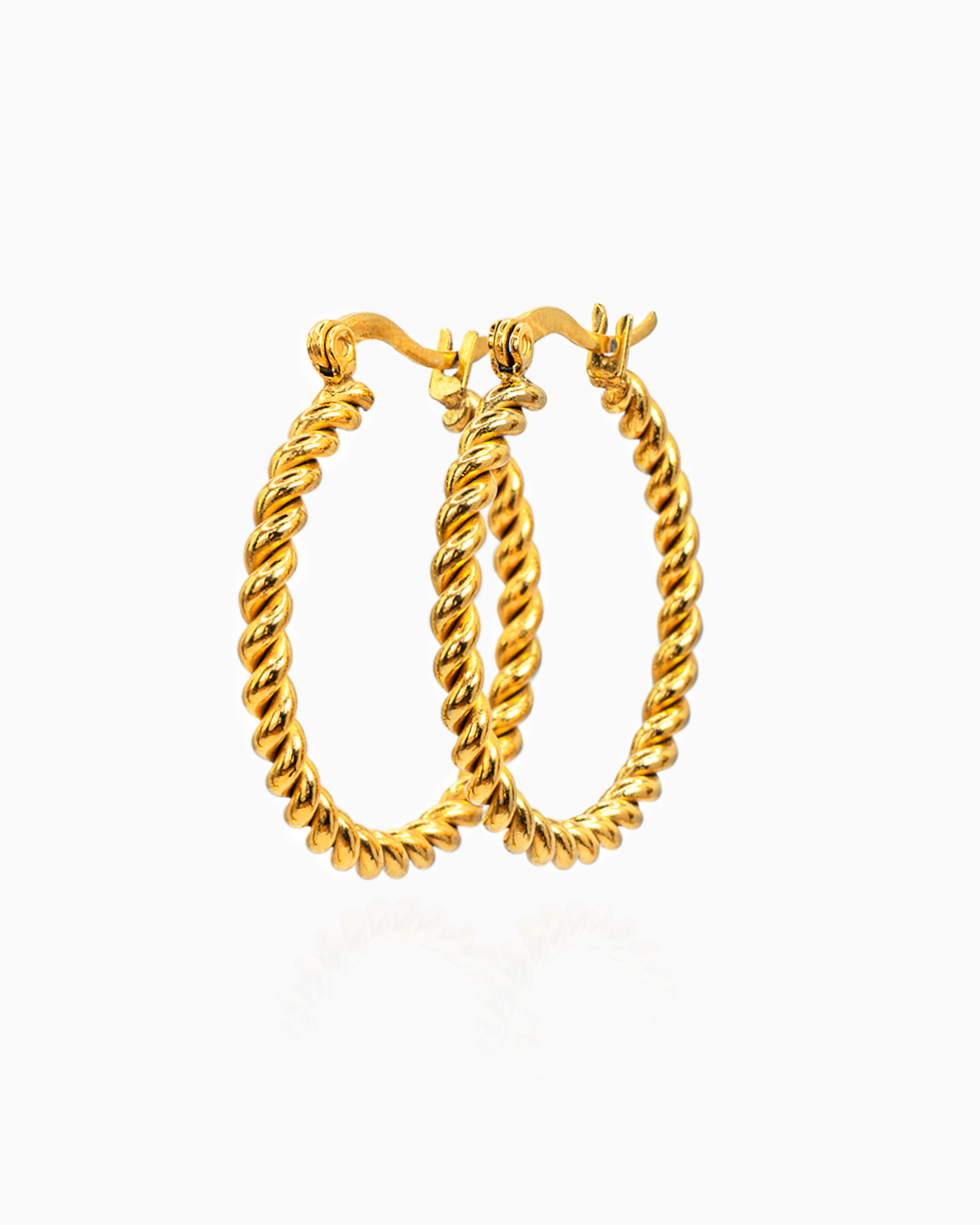 Statement-Creolen mit gedrehter Rope-Struktur: glänzend, leicht und angenehm zu tragen. Gefertigt aus hochwertigem Edelstahl 316L und mit 18K Gold veredelt – wasserresistent, hypoallergen und perfekt für Alltag wie Abendlooks.