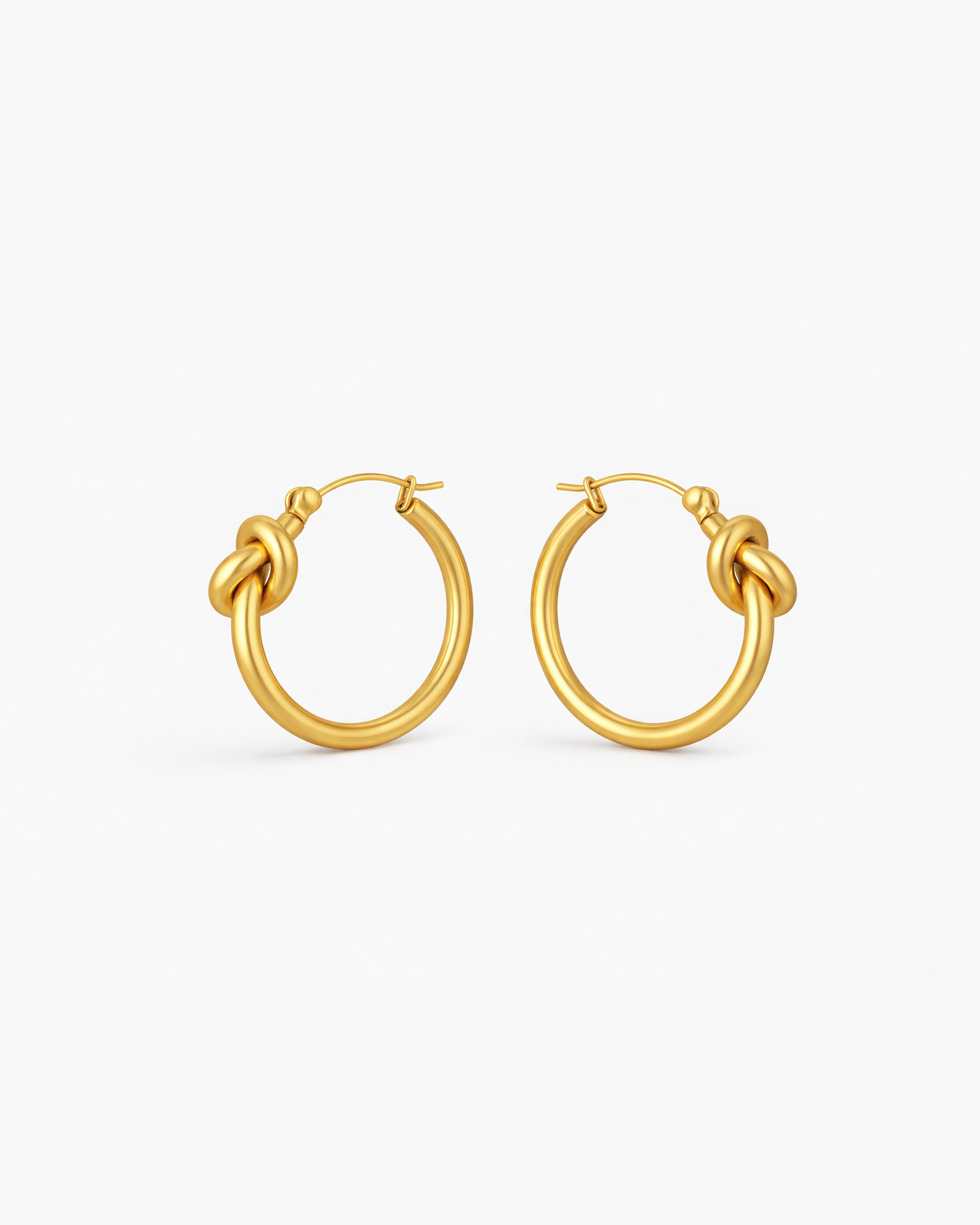 Schlichte Creolen mit modernem Knoten-Detail: minimalistisch, lässig und perfekt für jeden Tag. Gefertigt aus hochwertigem Edelstahl 316L und mit 18K Gold veredelt – wasserresistent und hypoallergen.