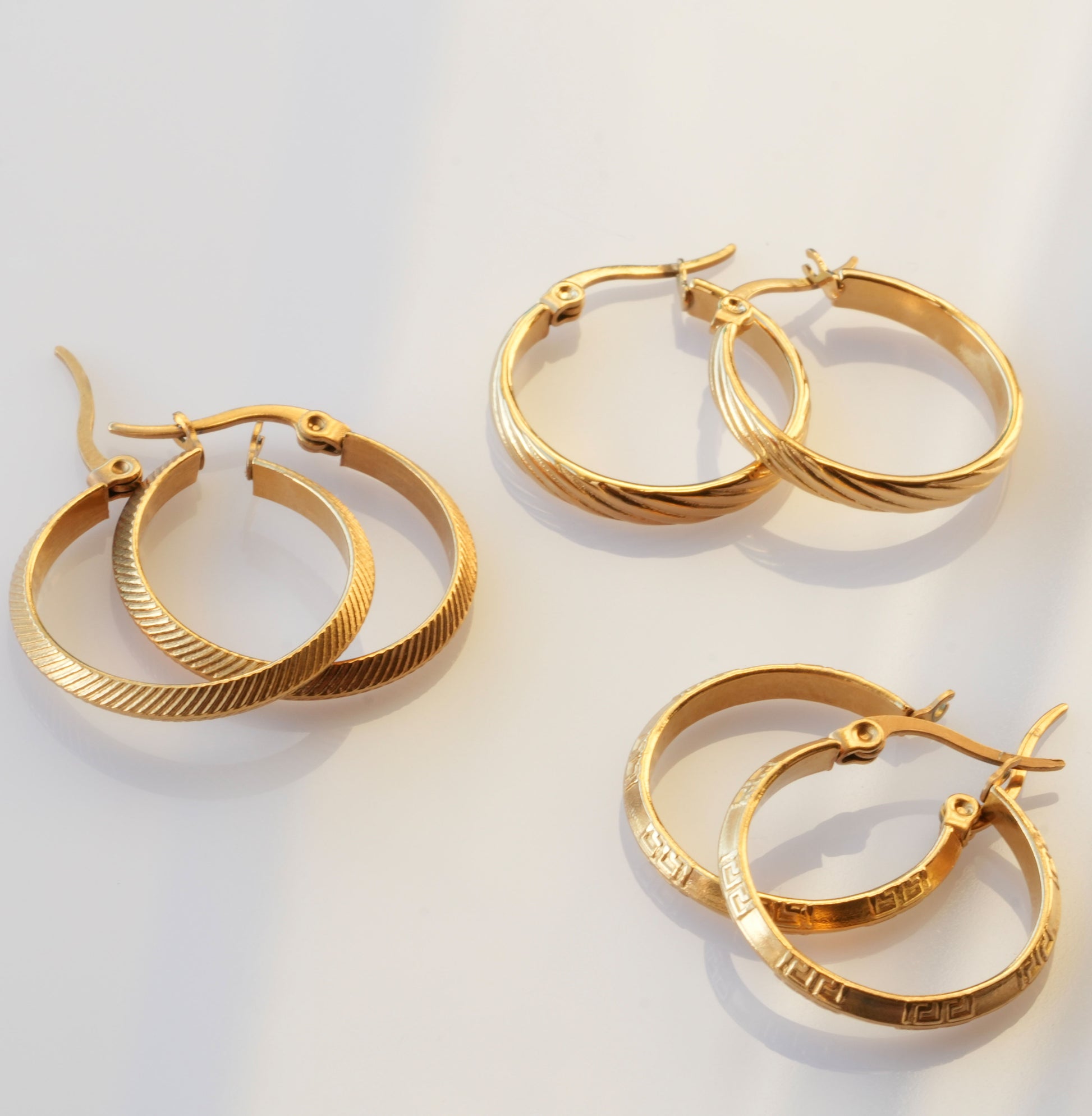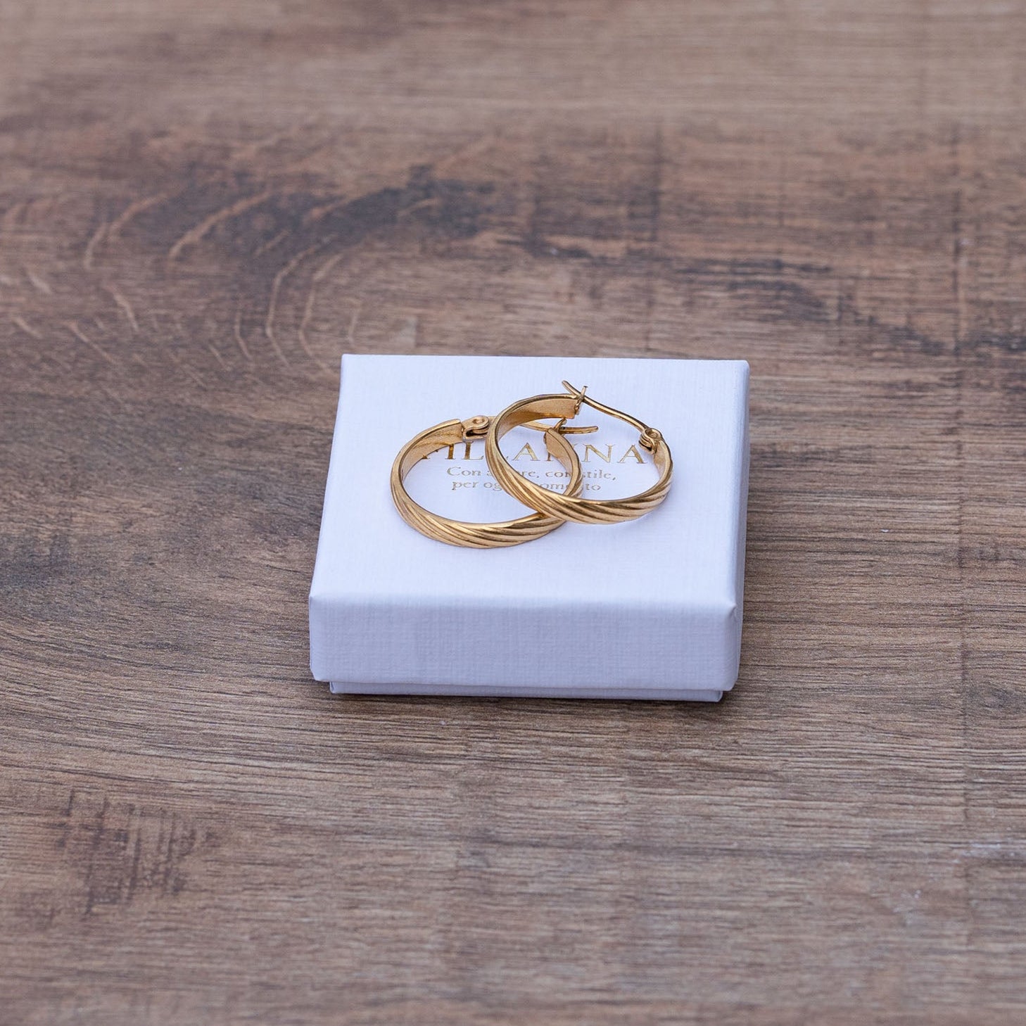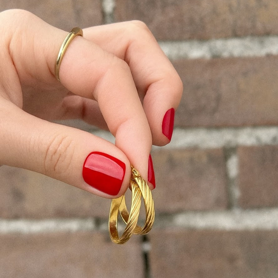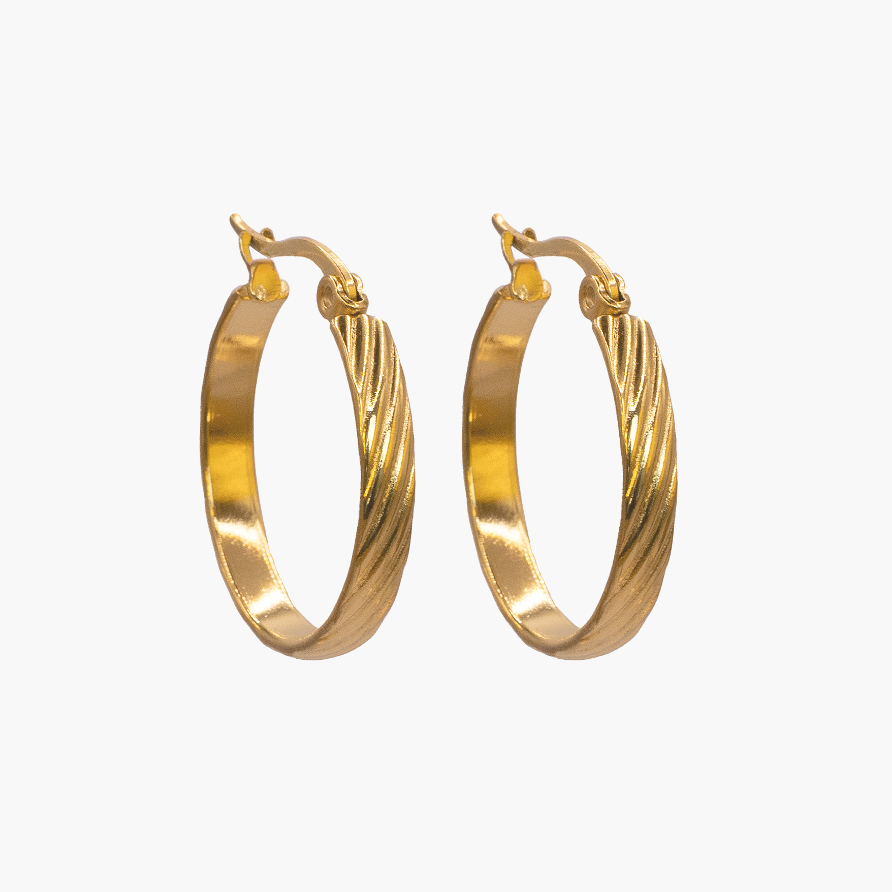 Klassische Hoops mit feiner Rillenstruktur: elegant, leicht und perfekt für jeden Tag. Gefertigt aus Edelstahl 316L und mit 18K Gold veredelt – wasserresistent und hypoallergen.