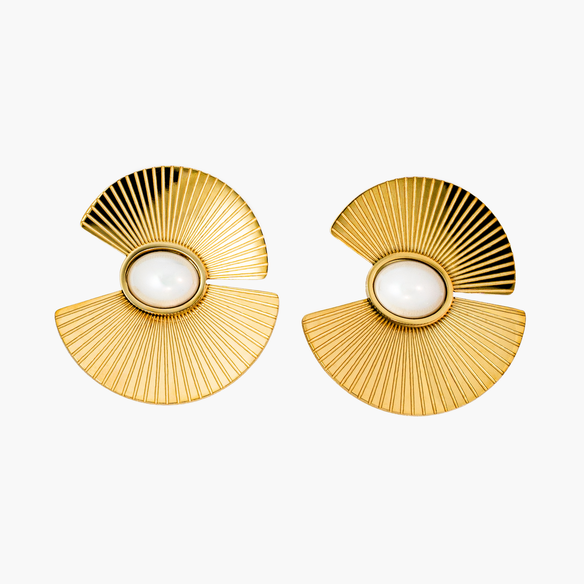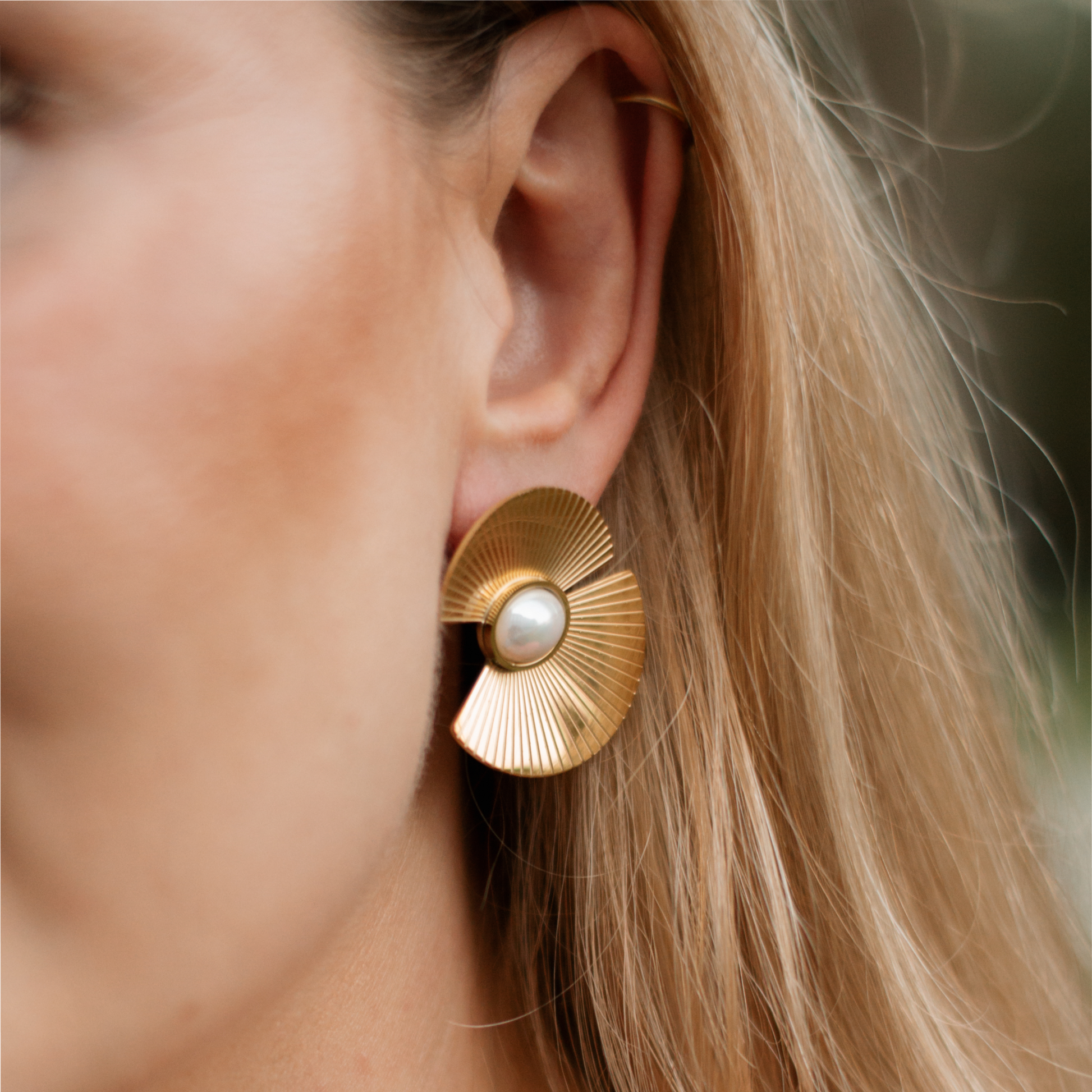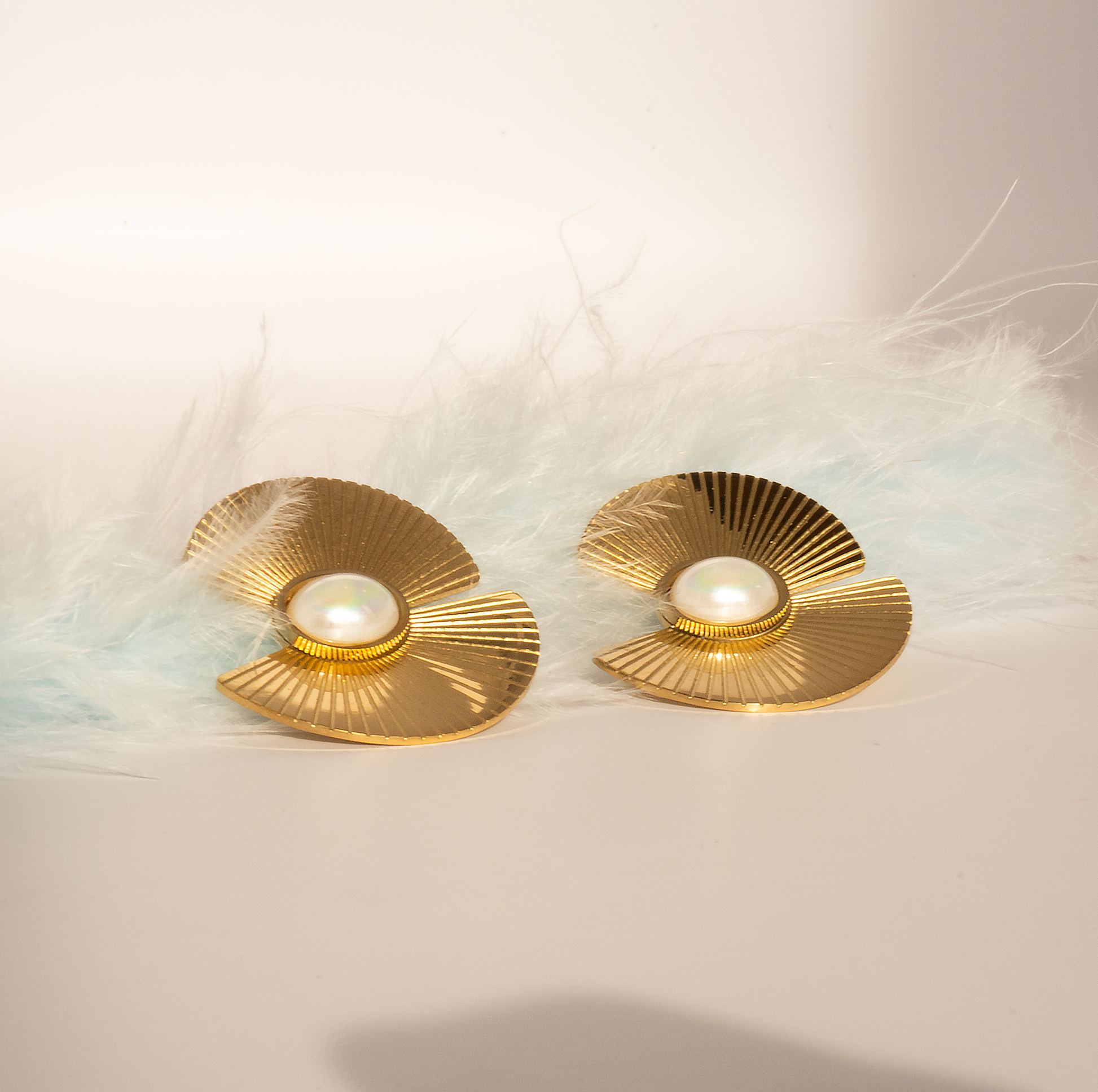 Ausdrucksstarke Ohrringe im besonderen Design – gefertigt aus hochwertigem Edelstahl 316L, vergoldet mit 18K Gold und veredelt mit einer schimmernden Perle im Inneren. Die Kombination aus goldener Eleganz und dem sanften Glanz der Perle macht dieses Schmuckstück zu einem echten Blickfang. Hypoallergen, wasserfest und angenehm zu tragen – perfekt für selbstbewusste Auftritte und besondere Anlässe.