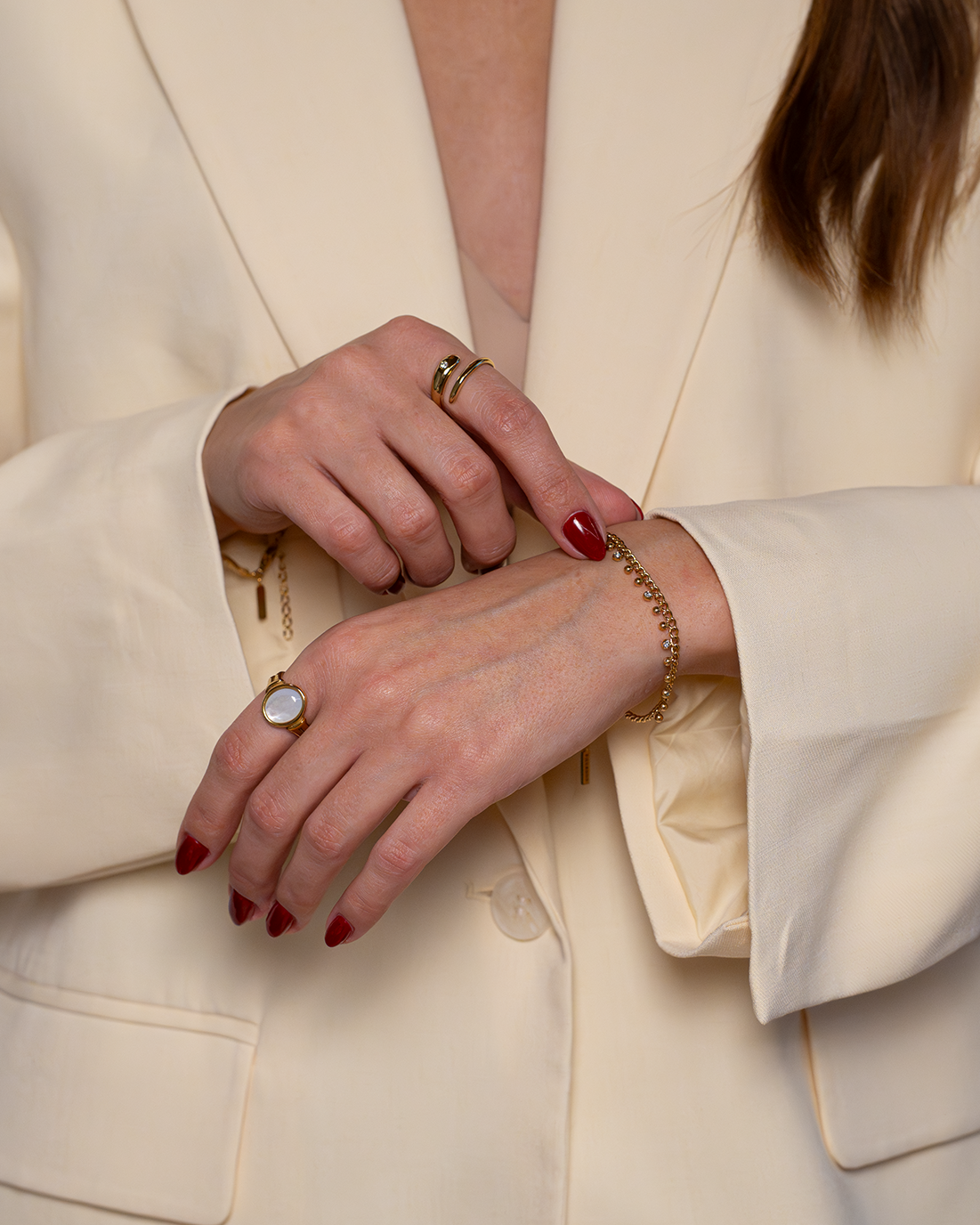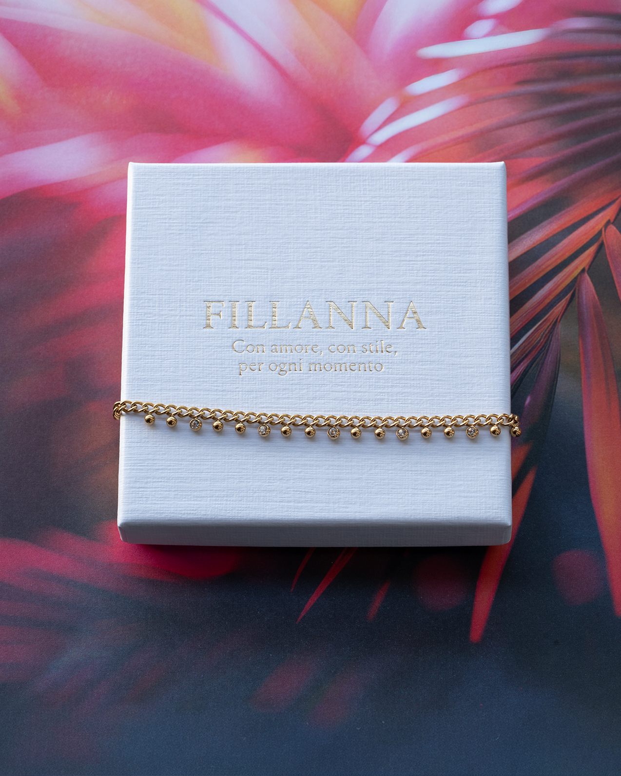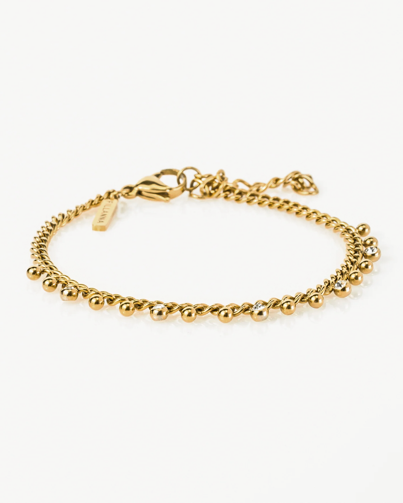 Витончений браслет з витонченими підвісками з кубічного цирконію – вони мерехтять з кожним рухом і додають вашому образу жіночності, грайливості. Виготовлений з високоякісної нержавіючої сталі 316L та оздоблений 18-каратним золотом: водостійкий, гіпоалергенний та приємно легкий.