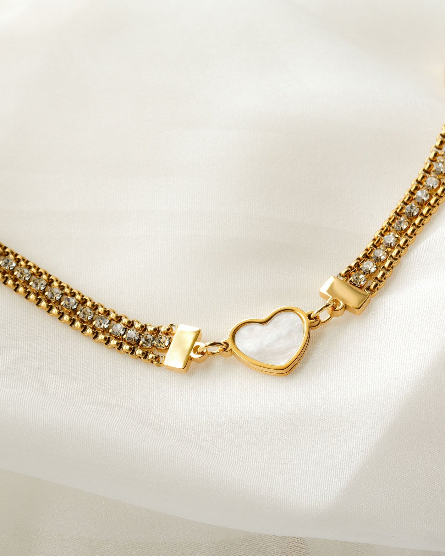 Позолочене серце з перламутровим мерехтінням символізує тепло, любов та внутрішній спокій – ювелірна прикраса, яка з елегантністю супроводжує кожен рух.